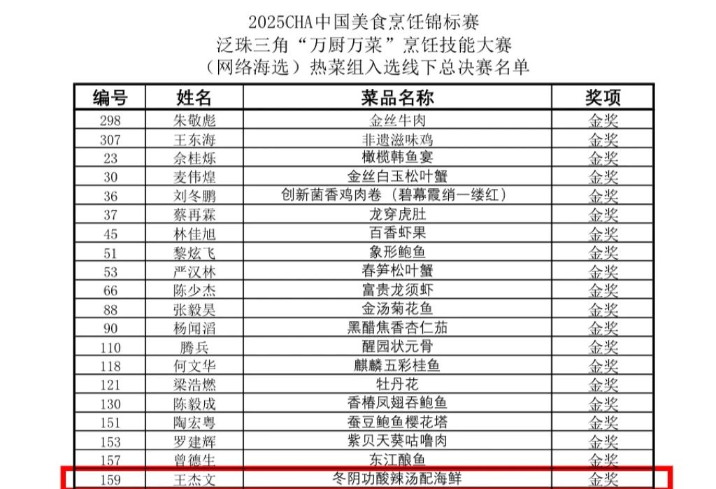 近日,在2025CHA中国美食烹饪锦标赛—泛珠三角“万厨万菜”烹饪技能线上大赛,广州华商职业学院酒店管理学院附属教学酒店·太阳城大酒店的西式烹饪教师王杰文凭借精湛的技艺和出色的创新能力,一举斩获金奖,凭借其精心制作的《冬阴功酸辣汤配海鲜》,从众多选手中脱颖而出,一举斩获金奖,并成功入围线下总决赛,为学院和酒店赢得了极高的荣誉。