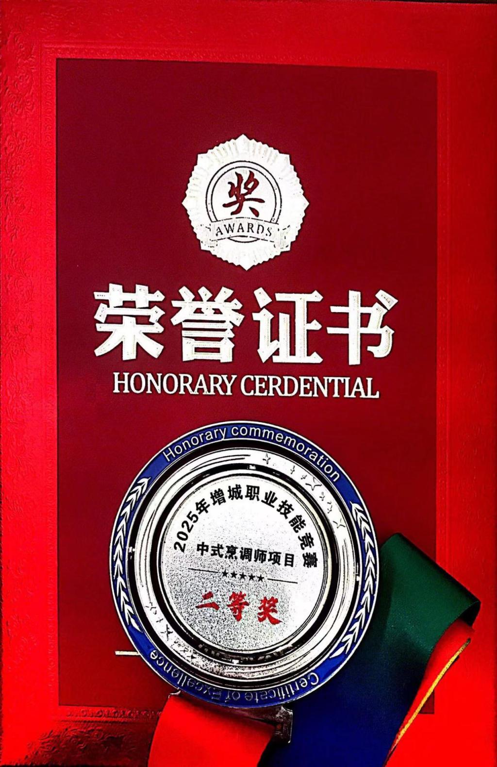 中式烹调师项目获奖证书
