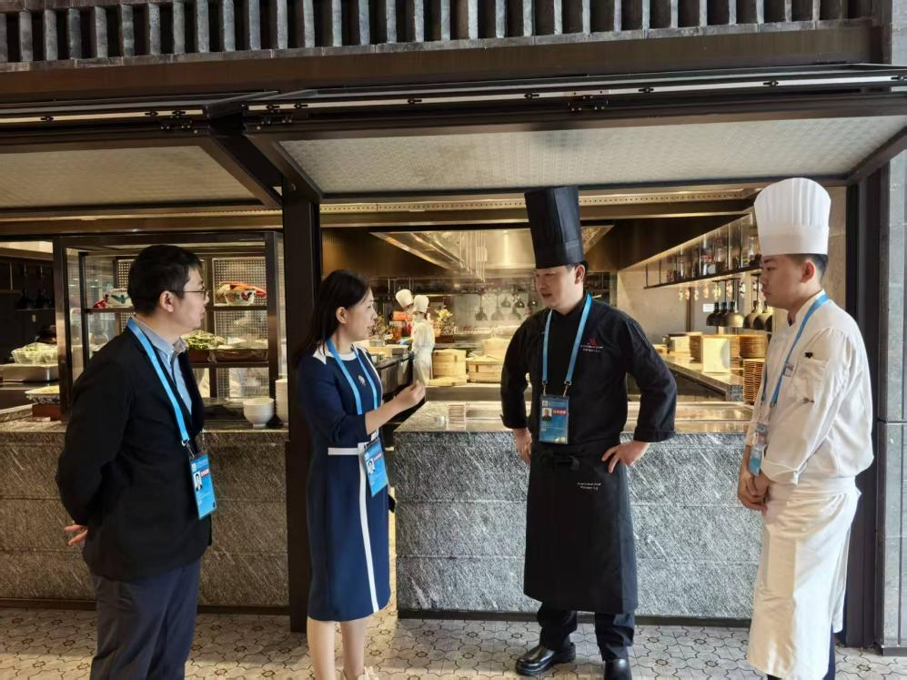 学院领导一行首先深入酒店餐饮厨房工作现场,近距离查看支援师生的服务场景与工作流程,关切询问同学们的工作强度、食宿保障及适应状态,倾听他们在岗位实践中的收获与感悟。现场学子们精神饱满,纷纷表示将以严谨态度做好残特奥会保障工作,不辜负学院与酒店的信任。